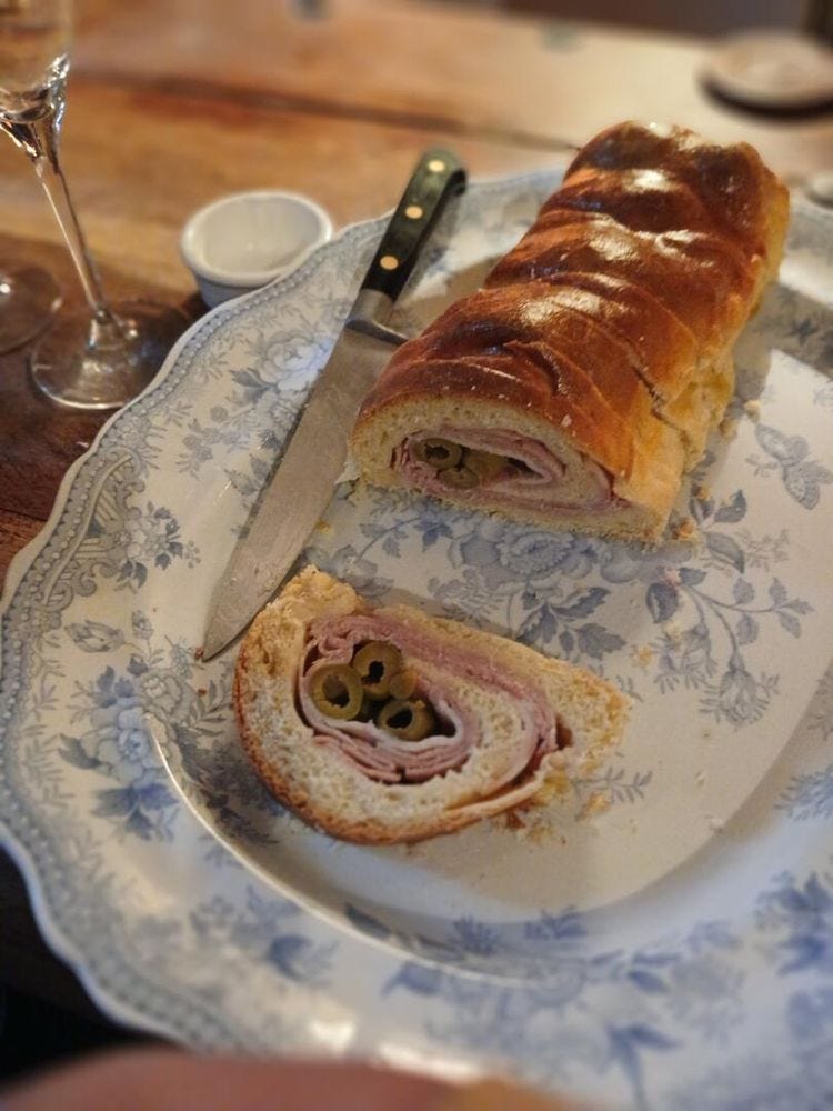 The last two landmarks of our Christmas are New Year’s Eve and the Feast of the Kings (Epiphany). On New Year’s Eve the duck terrine came out again with some 2019 Brand Gewürztraminer from the Cave at Turkheim, which wasn’t wonderful but at least it didn’t get in the way. Then we had the usual north Italian feast of a zampone (stuffed pig’s trotter) with Umbrian lentils, tomato sauce and mashed potatoes. With this we drank a 2018 Amarone from Saveroni. This was far from being the most expensive on the market and yet it was quite delicious, tasting of cherry, chocolate and spice. The 2016 St Emilion Château de Ferrand which we had with the cheese was sadly too cold and even a bit oxidised (another sniff the next day confirmed this – it was possibly a bad bottle), but with our chocolate cake there was Herbert Triebaumer’s 1993 Ruster Ausbruch with its aromas of rosewater and marmalade, which brought the meal to a delicious conclusion.