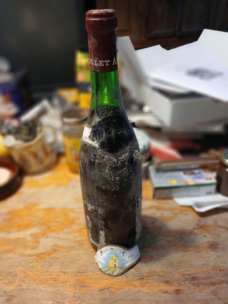 Christmas Dinner is eaten around six. We had a 2022 Chablis Premier Cru Les Vaillons from Simonnet-Fèbvre with the duck liver terrine which didn’t really work. The 2022s are not as rich as the 23s and as such, really lovely, classic Chablis. They need possibly three years to show their best. The wine with the heifer rib joint, however, was a crowning success. It was the 1982 Hermitage La Chapelle. The late Gérard Jaboulet was the most generous of men. Twice I recall him opening a bottle of his 1961 when I was in Tain, which an MW once told me was the greatest wine he’d ever tasted. On one occasion he presented me with a magnum of 1978 to drink at the millennium and I think he must have given me this ’82 too. As it was, I wasn’t certain of the date as the label had fallen off, but it was properly recorded on the cork.