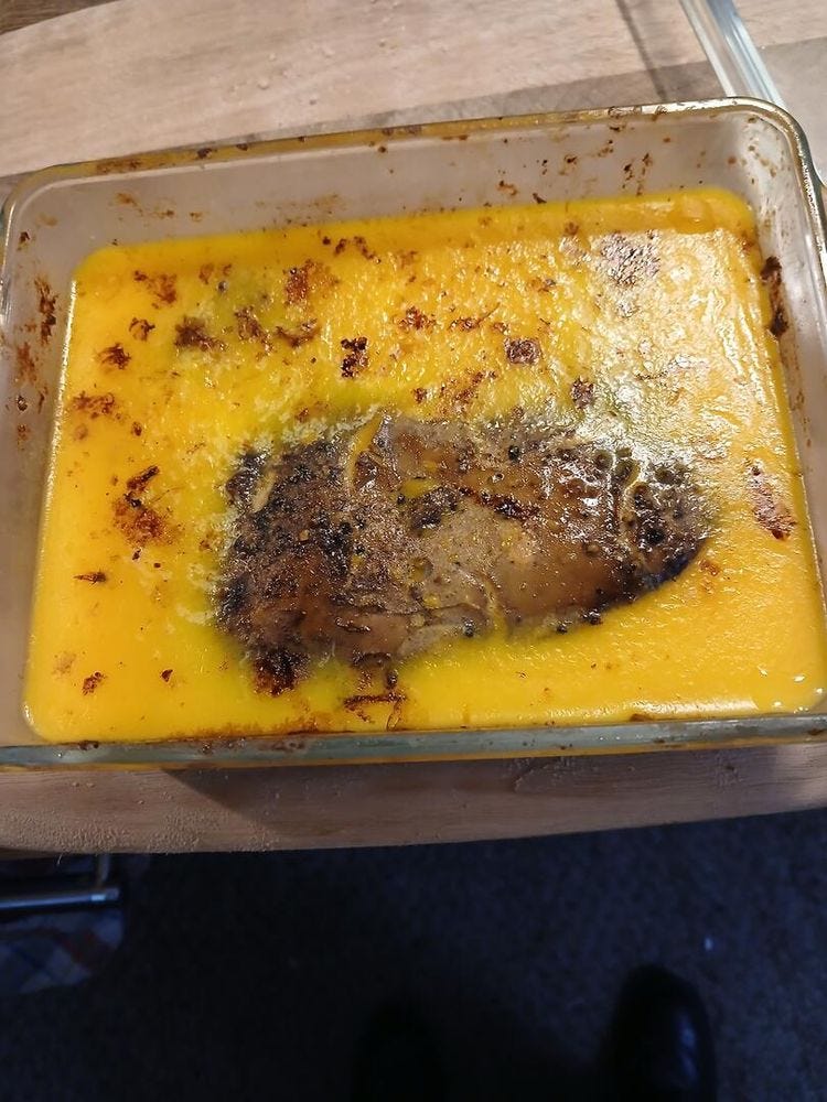 On another night there was half-way-decent Jurançon with Iberico ham and later the same wine with vanilla ice and some controversial runny honey with white truffles. My son made some excellent negronis one evening and on Twelfth Night we had wassail. I think I have now learned the trick with wassail: you must not let it boil; else you will lose the joy-giving alcohol. We were just three, so I baked three Bramley apples, replacing the cores with soft brown sugar and adding a little water and an orange studded with six cloves. When the apples were soft, I poured the liquid into a saucepan with the orange cut in two, about a litre of cider, 100g of sugar, half a cinnamon stick, half a lemon, and a spoonful each of ginger and nutmeg. While it was heating up, I put in a good slug of brandy. I kept checking the heat with my finger. When it was too hot to touch it was ready.
